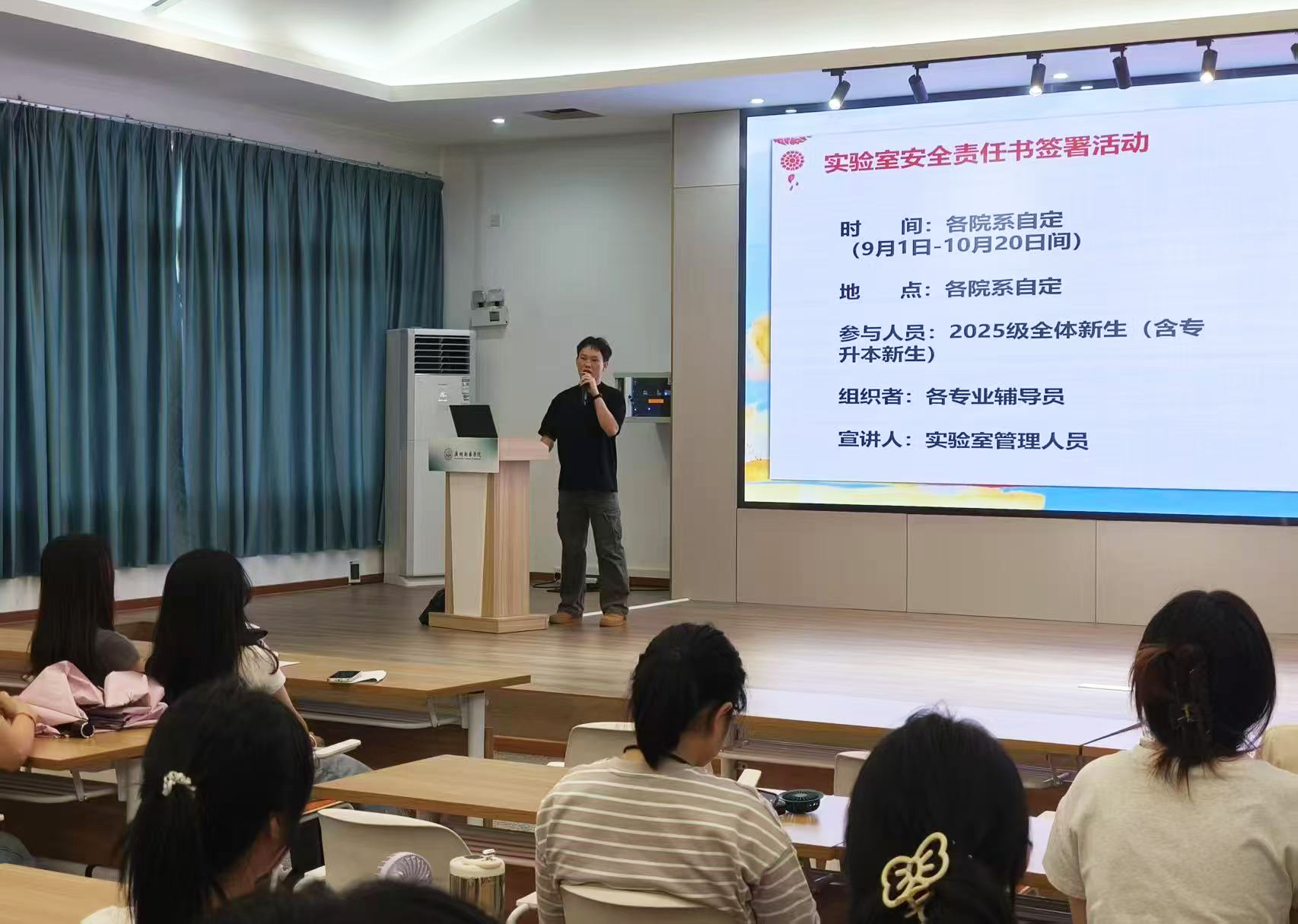 为切实加强实验室安全管理,提升新生的安全防范意识与应急处置能力,保障实验教学与科研工作的有序开展,我校于2025年9月正式启动面向全体2025级新生(含专升本新生)的实验室安全宣讲活动。