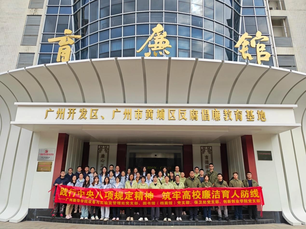 为深入学习贯彻党的二十大精神,持续推动中央八项规定精神在高校基层落地生根,切实增强党员干部的纪律意识、规矩意识和廉洁自律能力,12月11日上午,广州新华学院设备与实验室管理处党支部、图书馆(档案馆)党支部、保卫处党支部、创新创业学院党支部前往黄埔区广州育廉馆,开展“践行中央八项规定精神,筑牢高校廉洁育人防线”主题党日活动。此次活动旨在通过沉浸式廉政教育,引导党员干部以案为鉴、以廉为荣,进一步筑牢拒腐防变的思想堤坝,夯实高校廉洁育人根基。